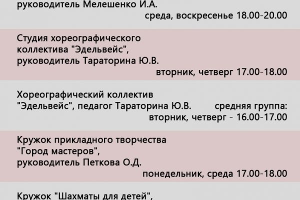 Расписание работы кружков, секций и творческих коллективов н...