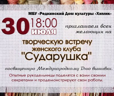 Подробнее30 июля приглашаем всех желающих на творческую встречу женского клуба "Сударушка", посвященную Международному Дню вышивки. Опытные рукодельницы поделя