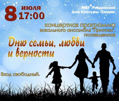 8 июля в 17.00 концертная программа вокального ансамбля "Притоки", посвященная Дню семьи, любви и верности. Вход свободный.