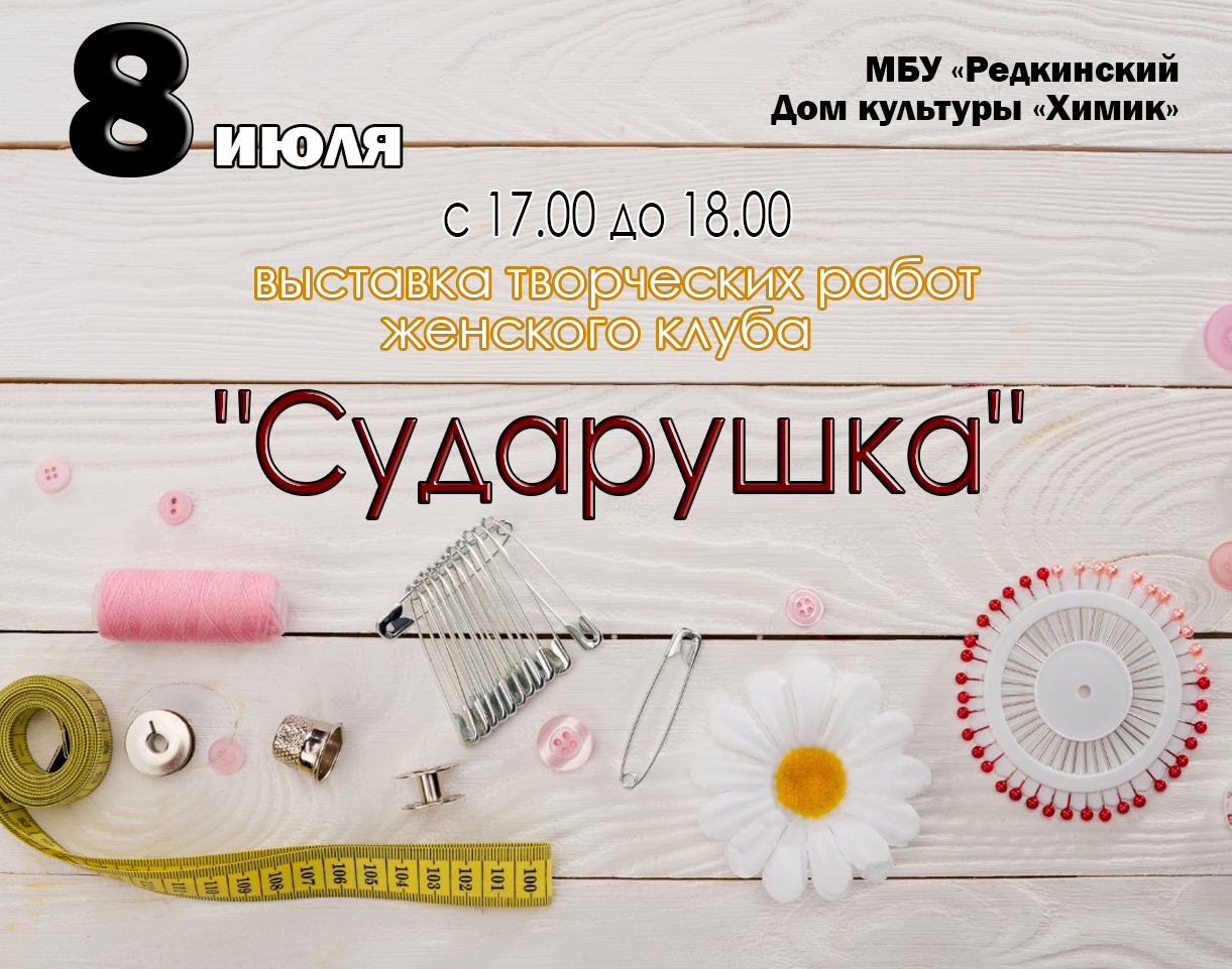 Афиша Выставка творческих работ женского клуба «Сударушка» 6 июля, 2025062 8 июля с 17.00 до 18.00 выставка творческих работ женского клуба «Сударушка». Концертная программа вокального ансамбля «Притоки», посвященная Дню семьи, любви и верности Previous Post День летних опытов и экспериментов для детей Next Post Похожие Афиша День работника культуры РФ 25 марта, 2025088 Афиша План новогодних праздничных мероприятий 22 декабря, 20220425 Афиша Конкурс рисунков на асфальте «Ура! Каникулы!» 30 мая, 20230280