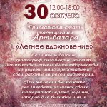 30 августа с 12-18ч ,Дом культуры «Химик» приглашает вас на АРТ БАЗАР, где талантливые мастера представят свои уникальные работы!