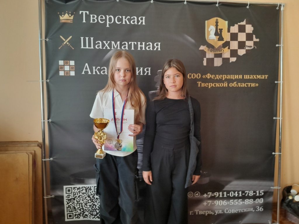 Участницы кружка «Шахматы для детей» ДК «Химик» под руководством Воронина Дениса Михайловича Хоменко Ева и Денисова Варвара приняли участие в детско-юношеском Первенстве Тверской области по быстрым шахматам и показали отличные результаты.