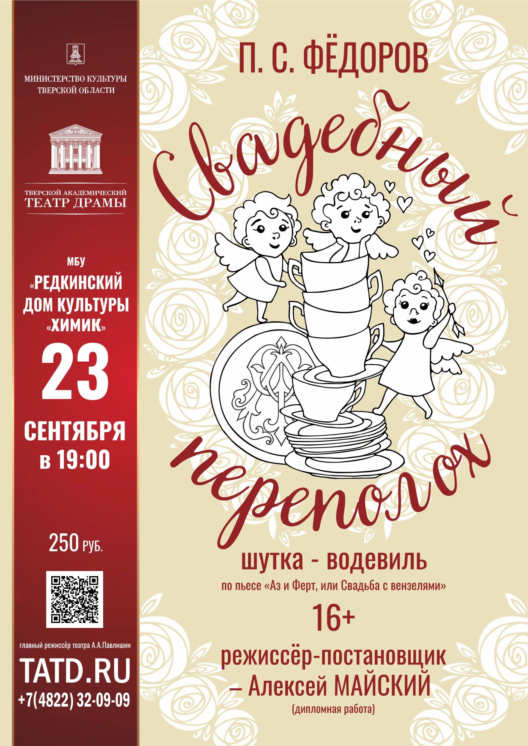 Афиша Спектакль «Свадебный переполох» 19 сентября, 20250122 23 сентября в 19:00 спектакль «Свадебный переполох» Семейный помощник. Тверская область Previous Post Фотоотчет с празднования дня поселка 20 сентября 2025 Next Post Похожие Афиша Цирк с программой Щенячий патруль 9 апреля, 20210867 Афиша Фотоконкурс «Защитники Отечества» 18 февраля, 20250101 Концертная программа по сказке «Дюймовочка» 14 ноября, 20240139