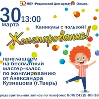 Каникулы с пользой! 30 марта в 13.00 приглашаем всех желающих на бесплатный мастер-класс по жонглированию от Александра Кузнецова (г.Тверь). Предварительная зап
